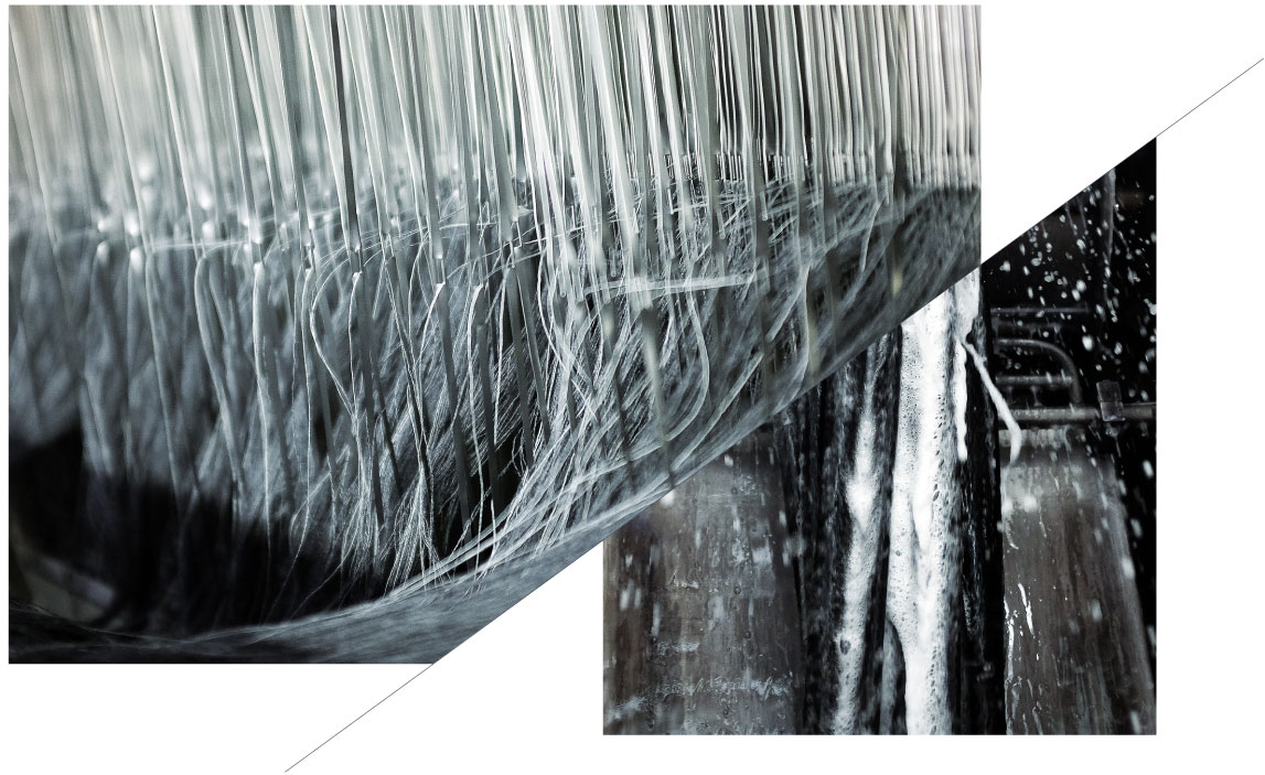 La tessitura è il momento di incanto e precisione tecnica in cui prende vita un tessuto. I fili di catena e trama si intrecciano fra di loro, per dare origine alle armature – l’unione di fili orizzontali e verticali – che variano in base al disegno voluto. Zignone esegue tutta la produzione all’interno del proprio stabilimento. Per la tessitura il lanificio impiega telai di ultima generazione, che utilizzano flussi d’aria per inserire i fili di trama invece dei tradizionali movimenti meccanici. Operaie specializzate si occupano poi del controllo qualità, eliminando le impurità residue e perfezionando a mano i tessuti in fase di rammendatura e pinzatura. Nel caso di stoffe ancora da tingere, i tessuti procedono alle macchine automatizzate del reparto di tintoria. È il momento della nobilitazione, quando il tessuto greggio ottiene finalmente le sue qualità definitive alla vista e al tatto – l’aspetto e la “mano” – in base alla destinazione. La finitura è la fase più importante di tutta la filiera, dove la precisione è priorità per raggiungere il piacere e il comfort che cerchiamo in un capo d’abbigliamento: gestire in house tutti i trattamenti permette a Zignone di garantire lo standard più elevato anche nei finissaggi tecnici evoluti.